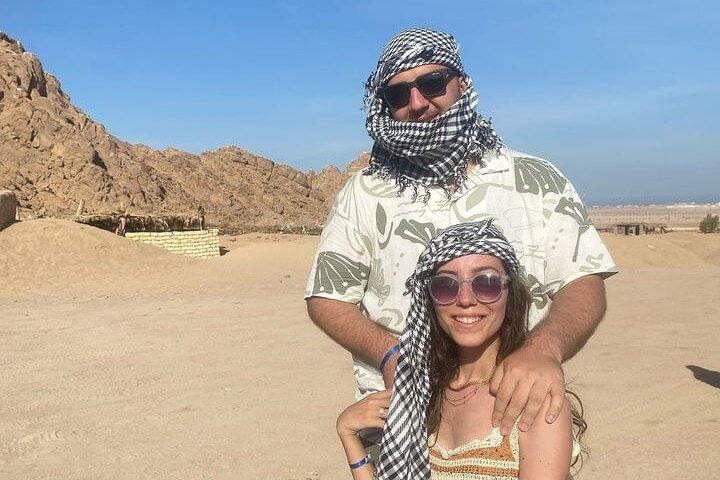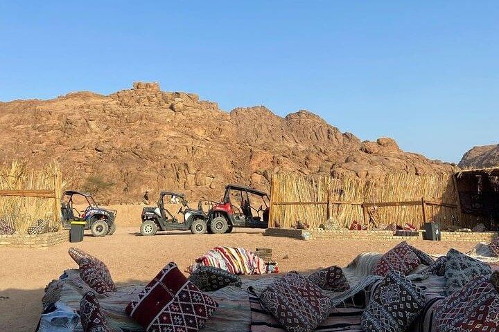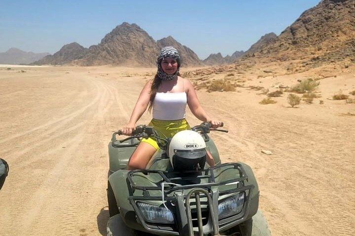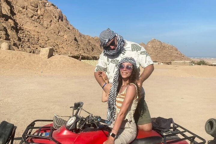 Delve into the heart of the Sinai Desert and experience the authentic Bedouin lifestyle just outside Sharm El Sheikh. Begin your adventure with a camel ride, swaying through the golden sands as you connect with the ancient traditions of the Bedouin people. Then, switch gears for an exhilarating quad bike ride, speeding across the vast desert landscape. Along the way, take in the stunning desert vistas and learn about the rich culture and history of the Bedouins. This journey offers a perfect blend of tradition adventure and natural beauty.