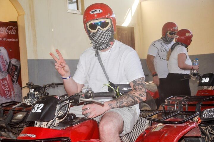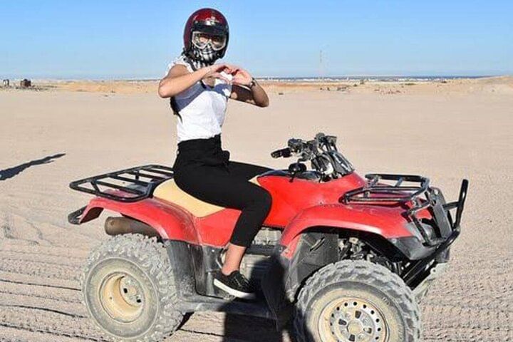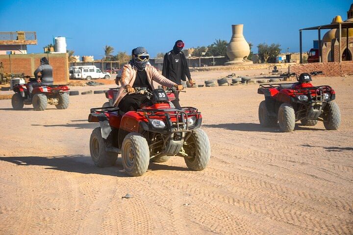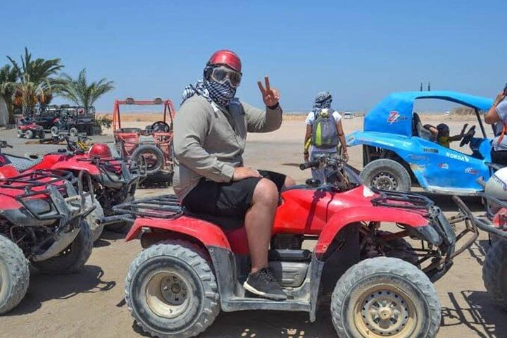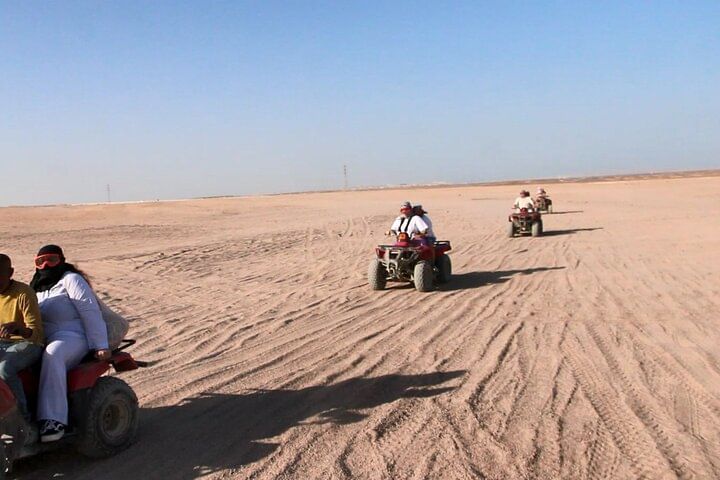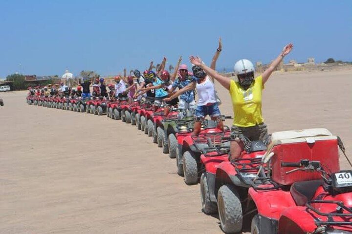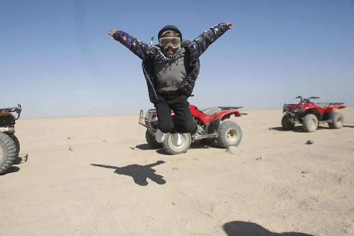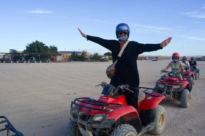 Spend an unforgettable experience exploring the deserts of Hurghada with our thrilling safari tour. Kickstart the adventure with an exhilarating quad bike ride through the dunes, followed by a scenic Jeep journey to a traditional Bedouin camp. Discover the rich culture with a camp tour, enjoy a peaceful camel ride, then relax with a delectable barbecue dinner under the stars. This evening promises adrenaline, cultural immersion, and mouthwatering flavors, making it a perfect desert escape.