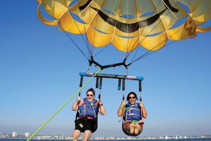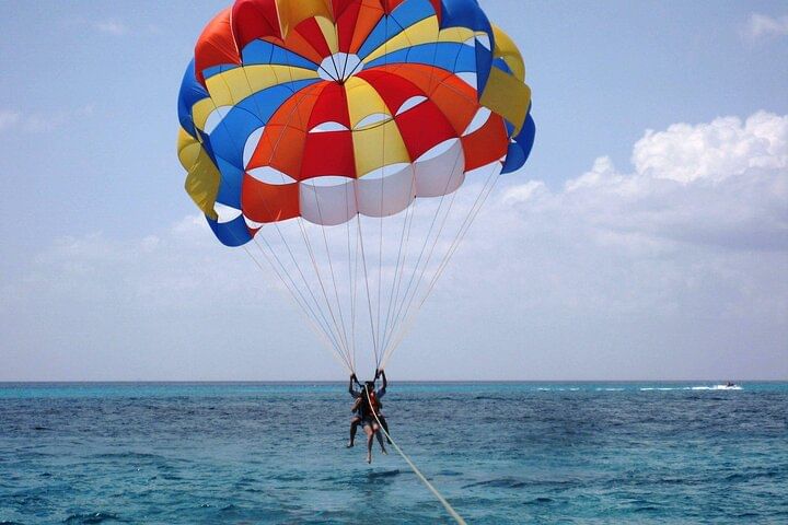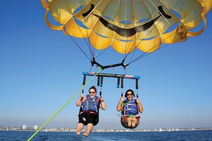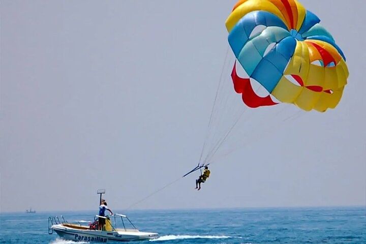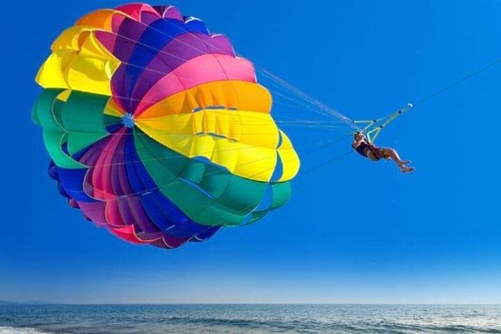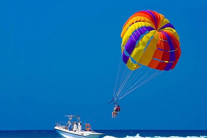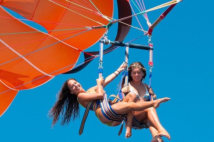 Take your Hurghada vacation to new heights with an unforgettable parasailing experience over the Red Sea. After an easy online booking, enjoy the luxury of private transport from your hotel to the Marine. Whether you opt for a solo or tandem flight, prepare for an adventure like no other. With the assistance of a professional and safety-conscious crew, you’ll effortlessly ascend to approximately 164 feet (40 meters) above the water, where you’ll be greeted with sweeping, panoramic views of the stunning coastline. No training is needed, allowing you to fully immerse in the thrill and beauty of the 5-7 minute flight. Soar through the sky and make your vacation memories truly extraordinary.