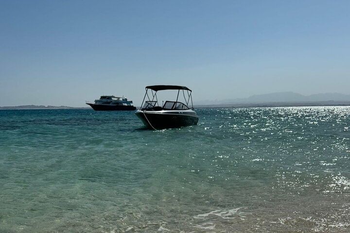 Enjoy an exciting speedboat journey across the Red Sea to the fascinating Giftun Islands. Enjoy lounging on beaches with white sand and watching the marine life in the crystal blue water. You have the option to select your adventure to visit orange island or ride waves by a private speed boat to dolphin house and begin your experience when you hop on your Speedboat for an exhilarating ride to swim and play alongside wild dolphins in their natural habitat. Feel the thrill of the open sea, soak up the sun, and experience the magic of dolphins up close!