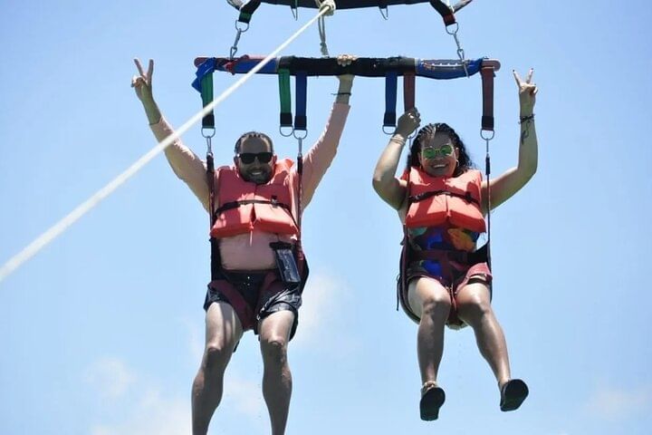 Dive into a day full of excitement with our Summer Mix water sports package in Hurghada! Glide through the sky with parasailing, feel the surge of adrenaline on a high-speed jet boat ride, and enjoy non-stop laughs as you bounce over the waves on our banana boat and sofa rides. Surrounded by the crystal-clear waters of the Red Sea, this adventure promises fun for all ages. We’ve got your transport covered with included hotel transfers, so all you have to do is show up and enjoy the ride. Gather your crew and book now for a day of sun, sea, and serious fun!